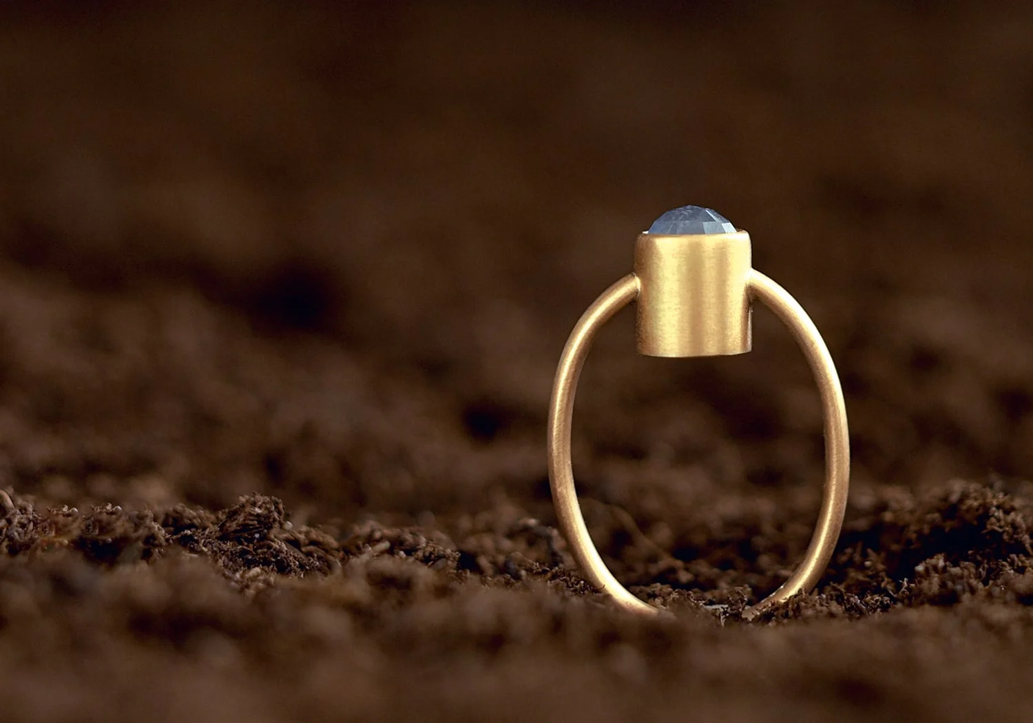 18 carat gold and light blue sapphire. SOLD. Can be made with most kinds of gemstones.