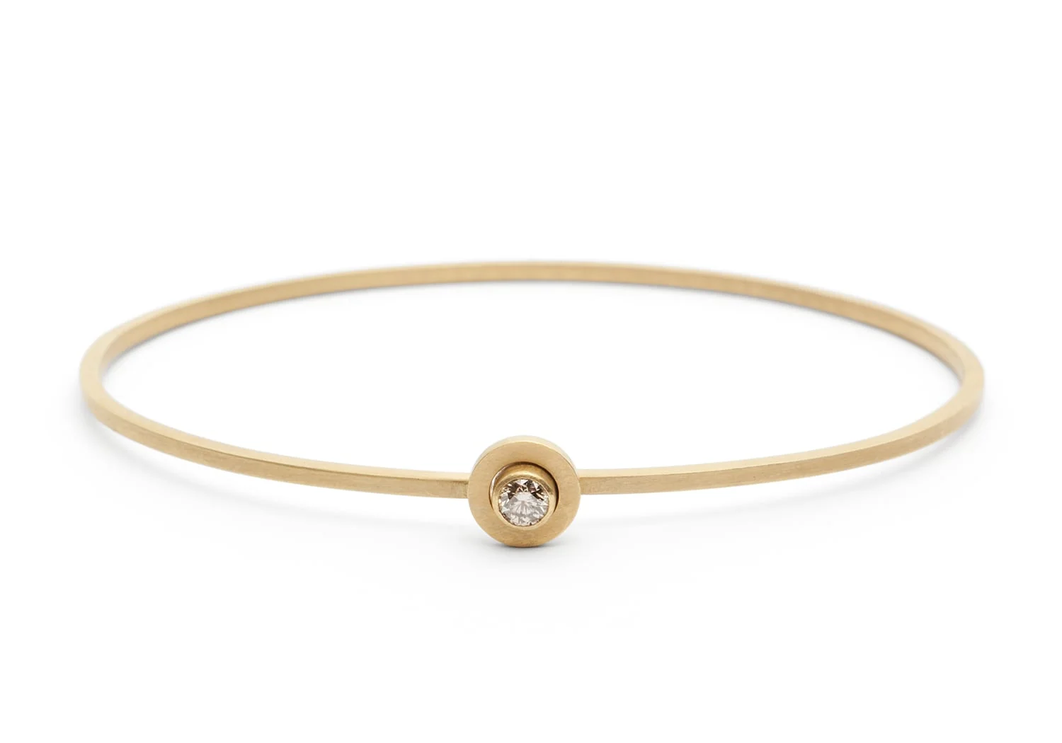 18 carat gold and light brown 0,13 ct diamond. The bangle opens by the stone.